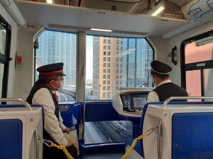ゆりかもめには、先頭車両に乗りました。写真を撮る人続出です。