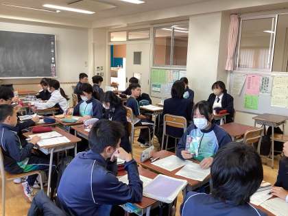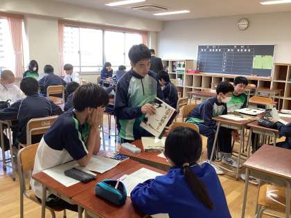 1年生は教科日本語の時間にビブリオバトルの1回戦を行いました。各自がお勧めの本を、どれだけ魅力的に伝えることができるかを競います。普段は物静かな生徒も、自分の大好きな本を紹介する時はニコニコと楽しそうにスピーチをしていました。3〜4人班から1人が選ばれ、次のステージに進みます。最終的には学年で8人が体育館でスピーチをして、チャンピオンが決まります。12月の土曜授業の日に学年発表があります。生徒たちのスピーチをぜひ見にきてください!
