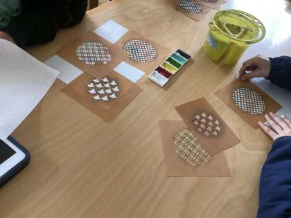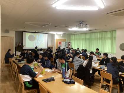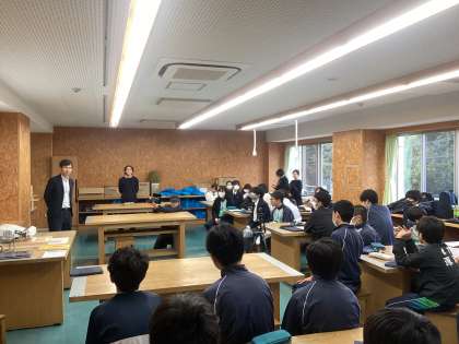 和えるの授業では染め物体験を行っていました。電通・バンダイナムコフィルムワークスでは生徒の質問に答えてくれています。