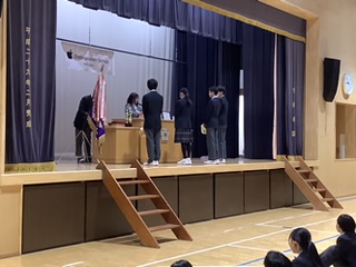 終業式後半では、社会科の『税の作文』、『税の標語』の表彰とテニス部男女の表彰がありました。それぞれ得意なところで力を発揮して頑張れていますね!!