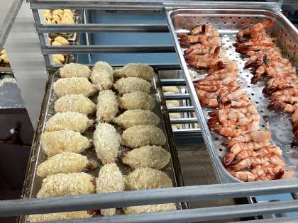 鬼の金棒エビフライは、エビにコロッケの具を巻きつけてあります。