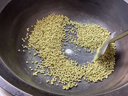三色福豆は、きな粉、抹茶、黒胡麻で色をつけました。