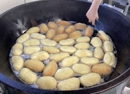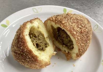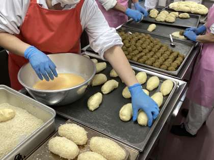 生徒に大人気のカレーパンは、イーストで発酵させた生地で包むので、仕上がりも本格的です。とても手間がかかるため、学年行事で人数の少ない日に作ります。