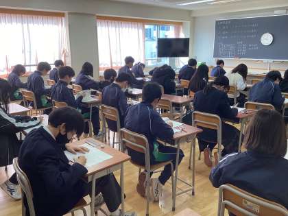 1、2年生がテストを頑張っています。それぞれの学年で受ける最後のテストとなり、1年間勉強してきた成果を発揮できるチャンスです。提出物の確認もお忘れなく!