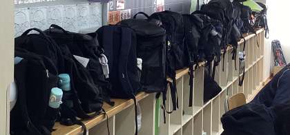 テストの為に普段は机の横にかけてある鞄がロッカーに並べて置いてあり圧巻です。
