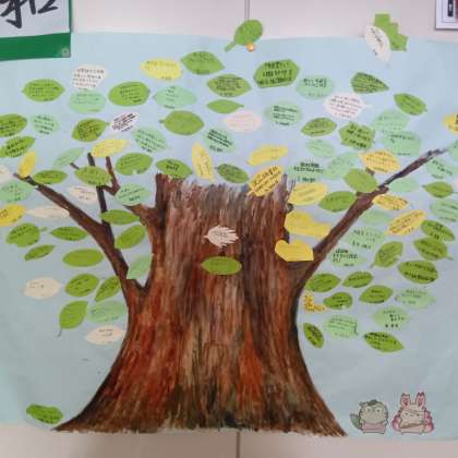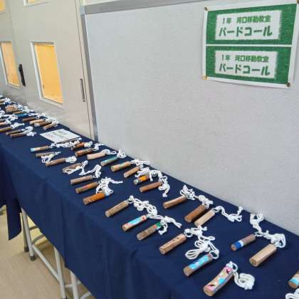 1年生の階には、思いやりの木、そして5月に実施された河口湖移動教室にて作成したバードコールが並びます。