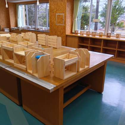 ふ 金工室には、技術の授業で製作した木工作品、廊下には生物育成のレポートが展示されています。家庭科とコラボで?美味しいレシピも写真入リで紹介されていました。