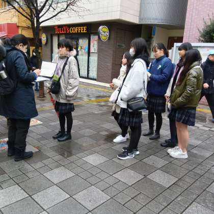 桜新町駅チェックポイントです。最初の班が到着しました。