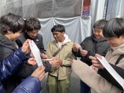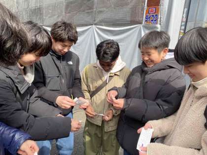 おみくじをひいて、ドキドキの様子です。お互いに結果を見せ合っているのもほほえましいですね。