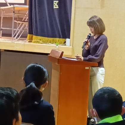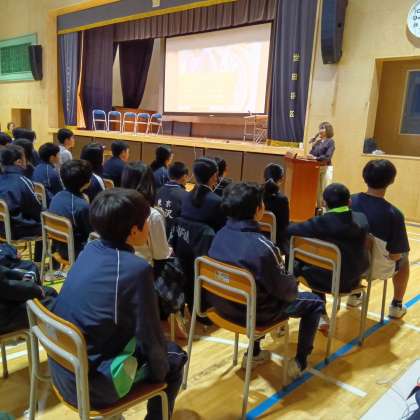 司会者から、最初のスピーカーさんが紹介され、全校生徒が集まっての開催となりました。