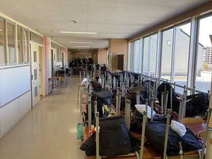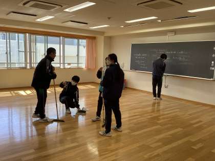 机が無いと教室が広く見えます。限られた時間の中で、みんなで協力して頑張っています。
