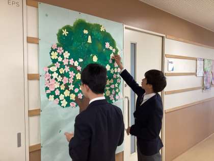2年生は1年間の目標をたて、「決意の木」に貼りました。昨年度の「決意の木」は葉っぱに目標を書きました。3年間でどんな素敵な花を咲かせるのか楽しみです。
