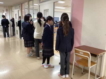 1年生は4教科が終わり、ホッとしながら。2・3年生はあと1教科を残しての昼休みのワンシーン。
