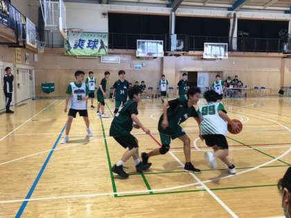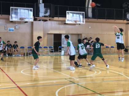 バスケットボール部が練習試合をしています。白熱の展開です!