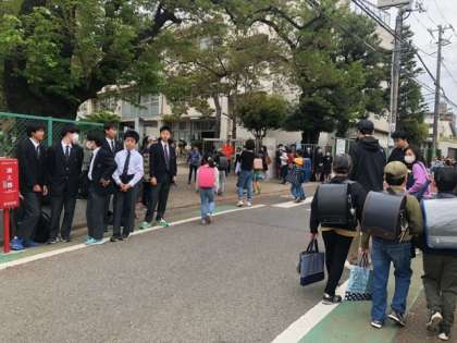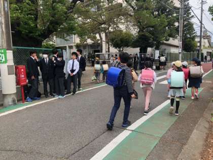 深沢中学校では、月に一度「ふれあい挨拶」を実施しています。ローテーションを組んで、出身小学校の校門付近で元気よく「おはようございます!」と小学生に呼びかけます。地域の中で育つ。大切なことですね。