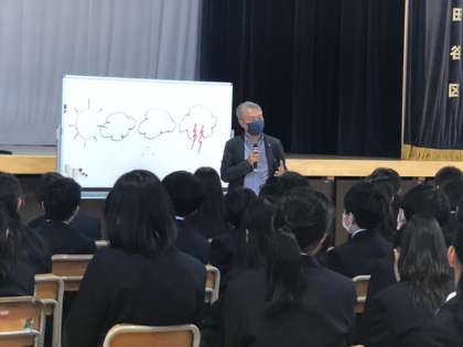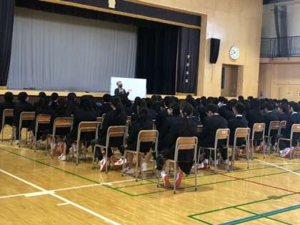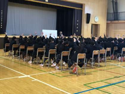 誰もが学校生活を安心、安全に過ごせるように、講師の先生を招いて「いじめ防止プログラム」を行なっています。講師の先生の質問に、生徒たちは自分の考えを堂々と述べていました。