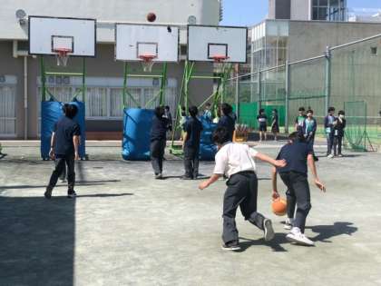 昼休み、生徒たちは青空の下で思い思いに過ごしています。気分転換して、さあ5校時も頑張ろう!