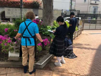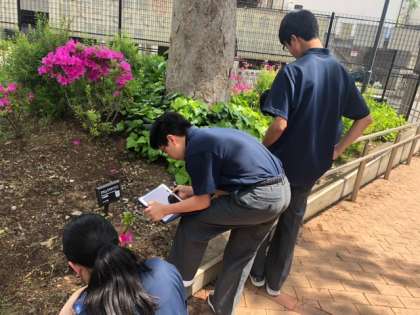 ?1年生の理科の授業で、校内の草花の観察をしています。さあ、どこにどんな草花が生えているかな!?みんな熱心に観察しています。