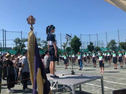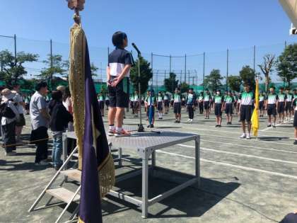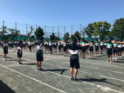 開会式、開会宣言、生徒会長の挨拶、演技上の注意、ラジオ体操と続きます。