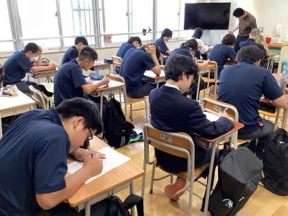 ことばの力を高めるために、新聞の社説などの要約の学習をすることで、社会への関心を高めるとともに、情報を読み取り表現する力を高めることを目的としています。社説を読み慣れていない生徒も多いのですが、みんな真剣に取り組んでいました。“継続は力なり“、今朝の全校朝礼で校長先生の話にもあったように、毎朝集中して学習することで、生徒たちが言葉や情報を扱う力を高めてくれることを期待しています。