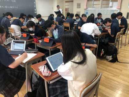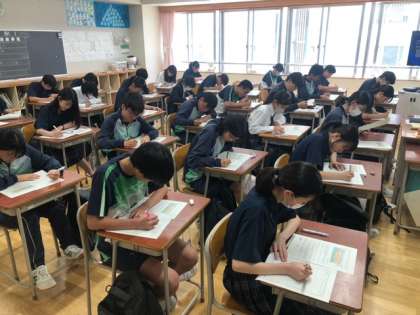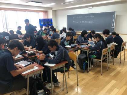 3年技術の時間では、発電所の仕組みについて学んでいました。まずは各自が調べてきた内容について班内でプレゼンを実施、後半は調べたことや班内で発表されたことについての確認テストを行いました。みんな真剣です。