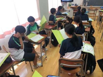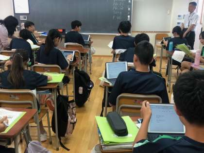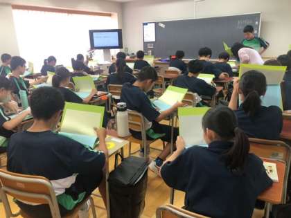 1年生の英語の授業では『自己紹介』と『相手についてたずねたり答えたりする』ことについて学習していました。英語の自己紹介文を考えて、ペアで発表し合ったりしていました。来週はいよいよクラス発表です。楽しみですね!
