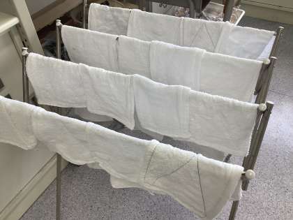 本日は使わなくなったタオルを使い、理科室と技術室で使う雑巾作りを行いました。