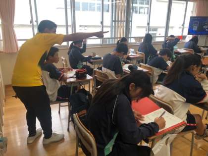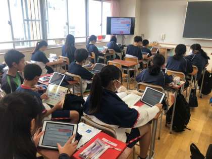 2年生理科の授業では「銅を加熱した時の重量の変化」について学習していました。前時の実験の結果をまとめたり、ロイロノートを利用した元素記号の確認テストをしたり、実験映像を見てみたり。みんな真剣に取り組んでいました。