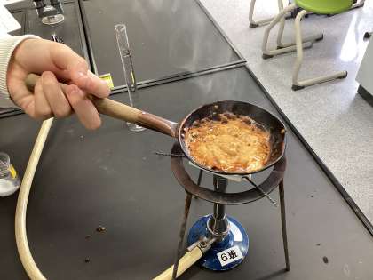 2年生の理科でカルメ焼きの実験中です。