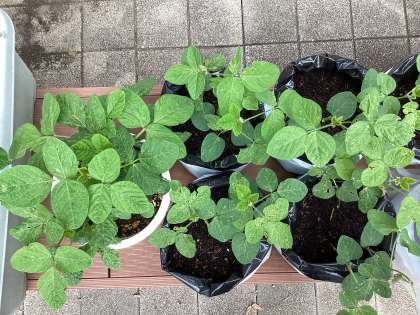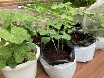 2年生の技術の授業で育てている枝豆の苗がよく育ってきました。