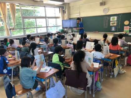 深沢小学校、桜町小学校、深沢中学校3校合同学び舎研修会がありました。今回の授業公開は深沢小学校です。みんな元気いっぱい!積極的に授業に参加しています!