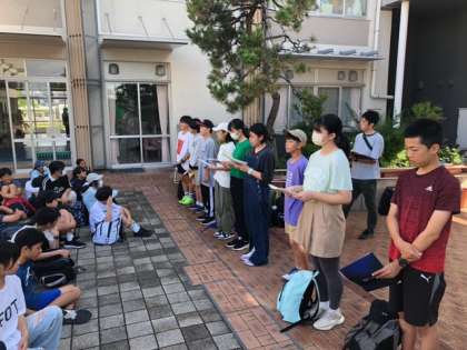 ?雨予報を覆し、青空が広がっています。さあ、これから1年生の河口湖移動教室がスタートします!