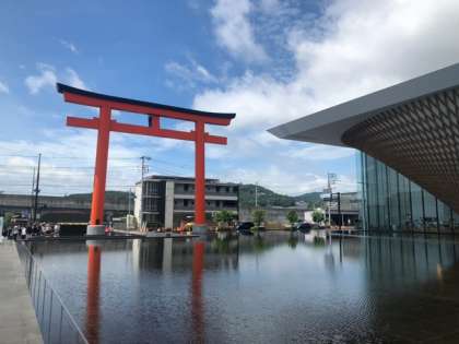 館内をぐるぐるまわり、展望デッキに着きました。気持ちがよい青空が広がっていますが、残念ながら富士山は雲に隠れてしまいました。