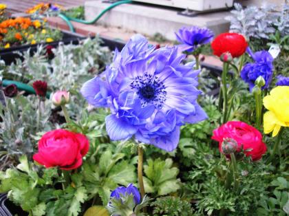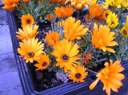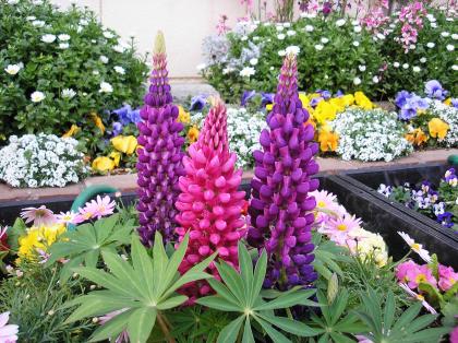 夏の日差しを避ける「緑のカーテン」の設備を利用して地域の方々のご協力で一足早い春が校門に咲きました。