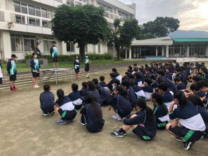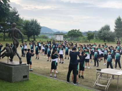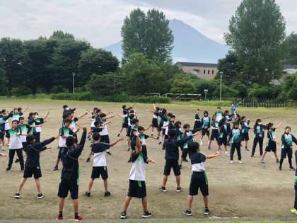 朝礼です。みんな時間通りに集合できました。ラジオ体操で身体を起こします!