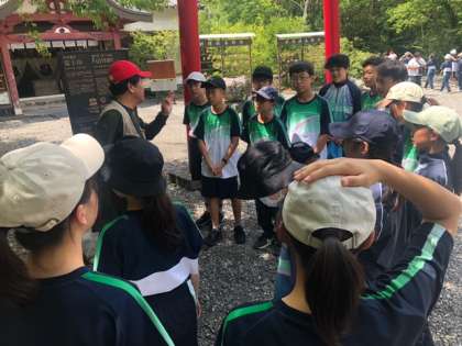 フィールドセンターに到着しました。これから学年を8グループに分けて、ガイドさんにご説明いただきながらフィールドワークを行います。