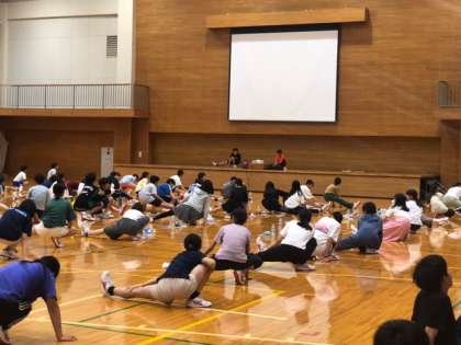 ?レク係が準備を進めてきたレクリエーション大会です。まずは男女別クラス対抗のドッジボール大会です。すごい迫力です。