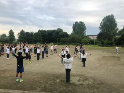 おはようございます。三日めの朝です。富士山は薄く雲がかかっています。朝礼で眠気を覚まし、今日も安全に楽しく活動します!