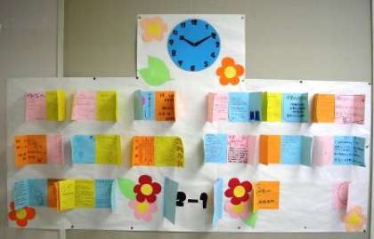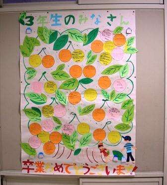 生徒会が企画する毎年恒例の3年生へのお別れメッセージが今年も廊下の壁を飾ります。2年らしく構図も凝っています。