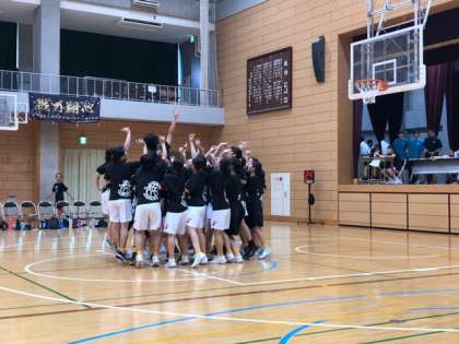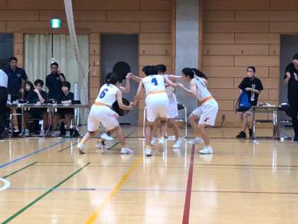 女子バスケットボール部が、都大会第3回戦に駒を進めました。試合前、みんなで気持ちを合わせます。