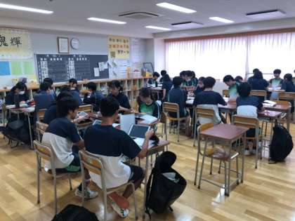 3年生は、約2週間後に迫った修学旅行に向けて、準備を進めています。今日の学活では、2日目のコース検討、しおりの綴じ込みを行っていました。楽しみですね!
