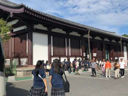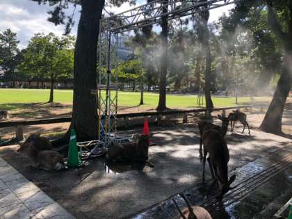 興福寺に着きました。奈良公園には暑さ対策で鹿用のミストが設置されています。鹿も気持ちよさそうです。