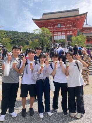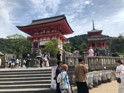 班行動なので、なかなか生徒に出会えません。清水寺周辺でキャッチ!この周辺はとても混んでいます。