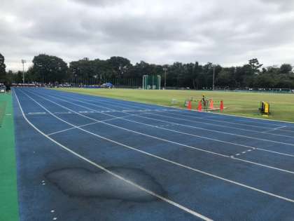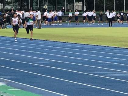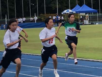 区陸が始まりました。涼しくて競技日和です。1年女子100Mです。