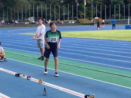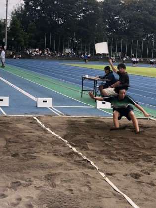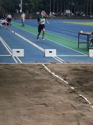 女子走り幅跳びです。助走をつけて、大きくジャンプ!