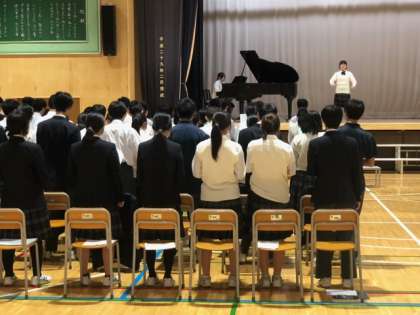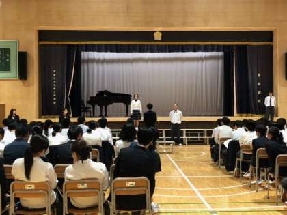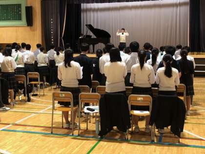 学年リハーサル、まずは学年全体合唱です。進行は、リハーサルの心構え、舞台上の並び方指示もすべて実行委員が行います。さすがです!
