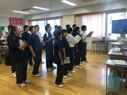 1年生の本日の放課後練習は教室です。いろいろ工夫しながら練習しています。1組は、パートに分かれて音取りをしていました。