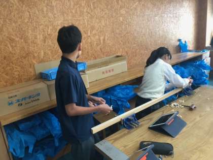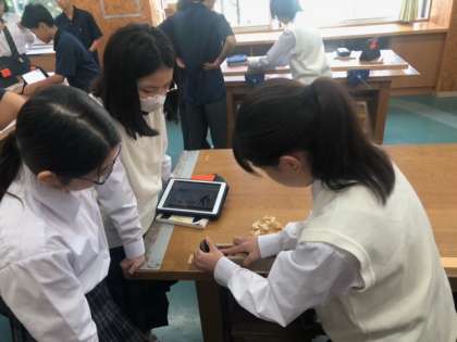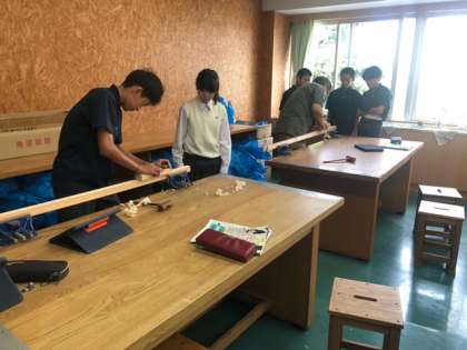 1年生技術の時間では、カンナを使って木を削る練習をしていました。薄く長く削るのは、なかなか難しい!