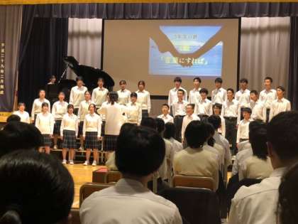 どのクラス合唱も、合唱する後ろには自分たちのクラス自由曲のイメージ画が映し出されています。とても美しいですね。