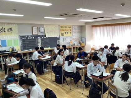 合唱コンクールが終わり、3年生は気持ちを切り替えて今まで以上に真剣に授業に取り組んでいます。国語の授業では「人工知能」についての討論が活発に行われていました。昼休みにはテニスコートで存分に体を動かしている様子も見られ、笑顔が溢れていました。